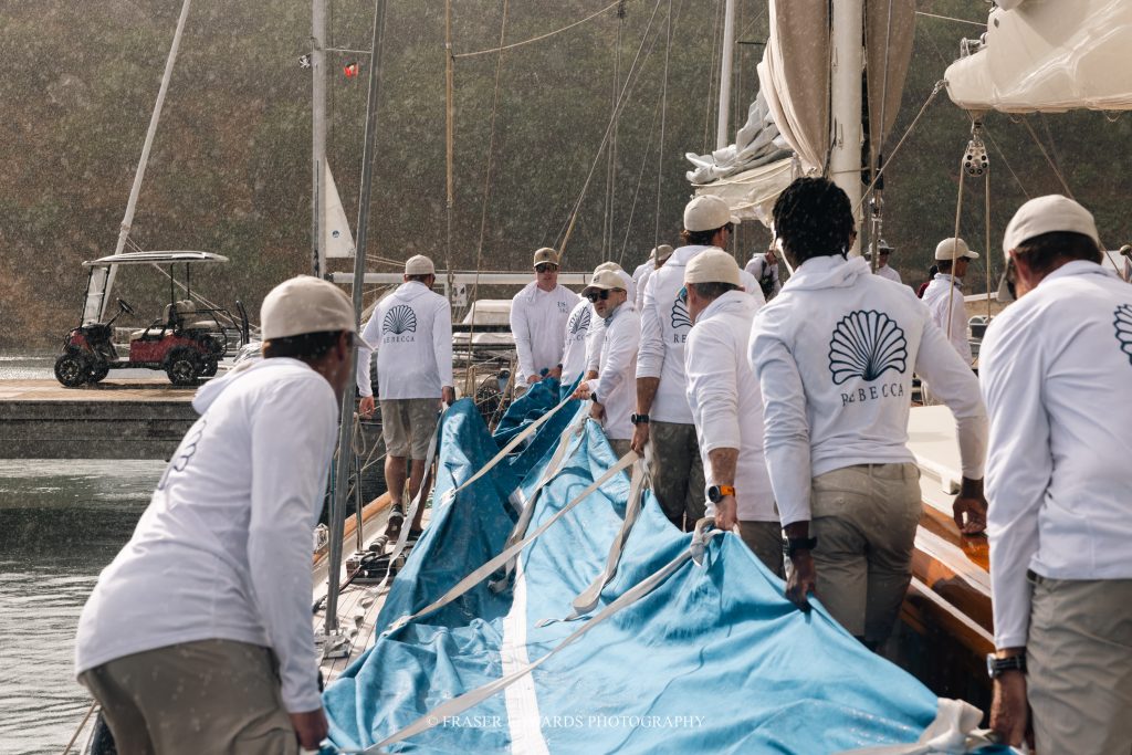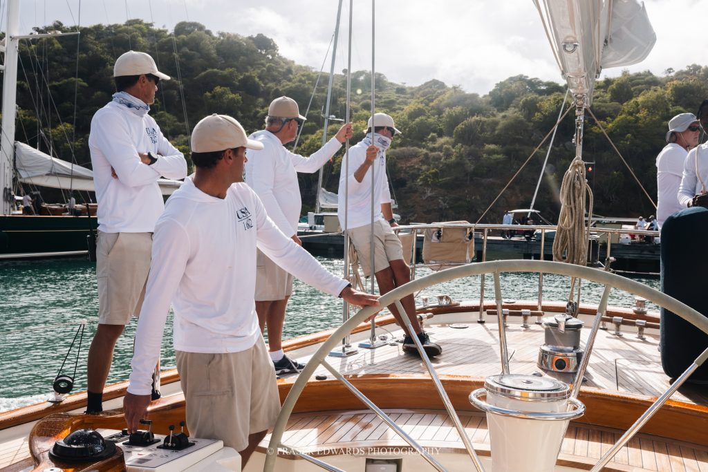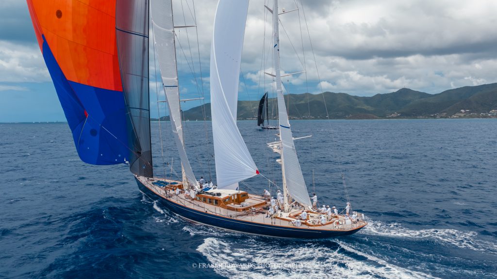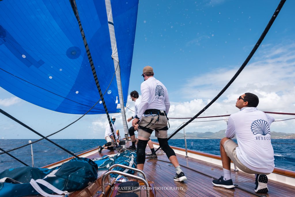 With perfect trade-wind conditions and a world-class fleet on the water, the stage was set for another memorable day of racing in Antigua. Fraser Edwards was on board Rebecca capturing the atmosphere on board the beautiful 140ft German Frers ketch captained by Seumas Meharg.